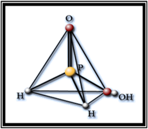 Молекула фосфорнуватистої кислоти має форму тетраедра з атомом фосфору у центрі, у вершинах тетраедра знаходяться два атоми водню, атом кисню і гідроксогрупи.